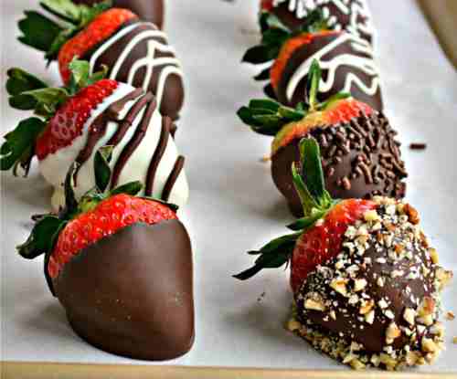 Tip: Leave the strawberries covered with chocolate, cover them in chopped sparks or nuts, or spray them with white chocolate.