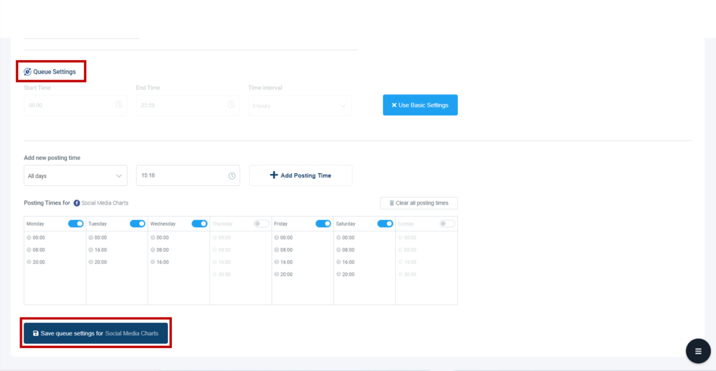 Queue’s scheduling features let you choose the time interval and then let it continue to post.