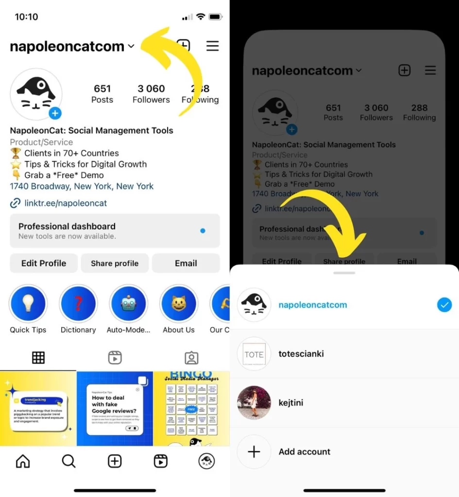 The most straightforward method of managing several Instagram accounts is using the IG app to toggle between accounts. Instagram lets you easily manage up to five accounts.